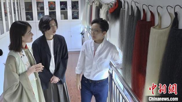 京劇名家王珮瑜帶領(lǐng)兩位主播走進(jìn)上海京劇院。 康玉湛 攝