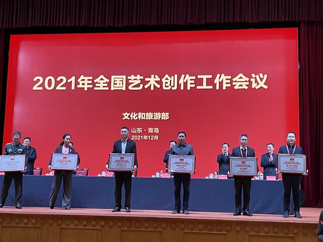 中國甘肅網(wǎng)12月19日訊 12月18日,文化和旅游部在山東省青島市召開的“2021年全國藝術(shù)創(chuàng)作工作會(huì)議”上,發(fā)布了“慶祝中國共產(chǎn)黨成立100周年舞臺(tái)藝術(shù)精品創(chuàng)作工程”入選名單,頒發(fā)了“慶祝中國共產(chǎn)黨成立100周年舞臺(tái)藝術(shù)精品創(chuàng)作工程獎(jiǎng)牌”。甘肅省文化和旅游廳遴選推薦的舞劇《絲路花雨》《大夢(mèng)敦煌》《彩虹之路》、隴劇《官鵝情歌》、小品《你笑起來真好看》等5部舞臺(tái)藝術(shù)精品,經(jīng)文旅部評(píng)審正式入選“舞臺(tái)藝術(shù)精品創(chuàng)作工程重點(diǎn)扶持作品”。甘肅省歌舞劇院創(chuàng)排的舞劇《絲路花雨》作為12家“百年百部”工程受獎(jiǎng)單位在全國藝術(shù)創(chuàng)作工作會(huì)議上接受獎(jiǎng)牌和榮譽(yù)證書,甘肅省文旅廳、山東省文旅廳等參會(huì)代表12家領(lǐng)獎(jiǎng)單位上臺(tái)領(lǐng)獎(jiǎng),充分展現(xiàn)了文旅部對(duì)甘肅省入選作品質(zhì)量及組織工作的高度肯定。
