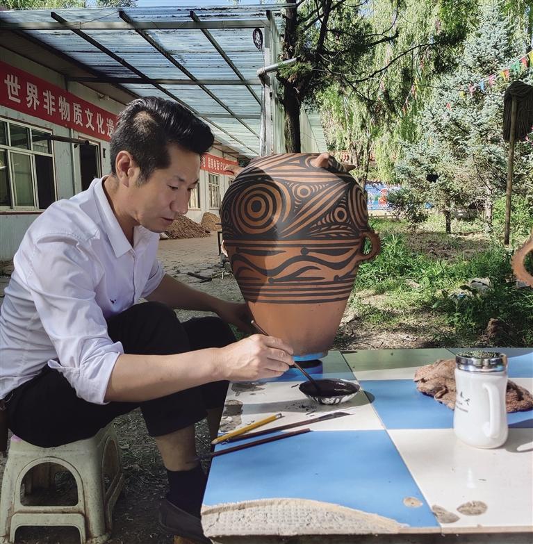 彩陶蘊含著神秘而古樸的遠(yuǎn)古文化,其精巧的技藝更蘊含著古人類的智慧和創(chuàng)造力,包含著獨特的文化記憶和民族情感。馬黑麥用自己的方式“復(fù)原”了古人的勞動方式和審美情趣,并在此基礎(chǔ)上進(jìn)行了創(chuàng)新和延續(xù),他以非遺傳承人的身份為己任,追根溯源,不斷探索,將彩陶文化的資源優(yōu)勢轉(zhuǎn)化為促進(jìn)經(jīng)濟(jì)發(fā)展的產(chǎn)業(yè)優(yōu)勢和經(jīng)濟(jì)優(yōu)勢,在國家大力倡導(dǎo)和發(fā)展文化產(chǎn)業(yè)的背景下走出了一條可持續(xù)發(fā)展的道路。2021年12月23日,馬黑麥被當(dāng)?shù)卣谟?ldquo;提名河洲工匠”獎,對此殊榮馬黑麥感到榮幸的同時又深感責(zé)任重大,就像他說的:“彩陶傾注了我對家鄉(xiāng)的感情,我會繼續(xù)努力將彩陶技藝和文化發(fā)揚和傳承下去,相信我們非遺傳承人的路會越走越寬廣。”