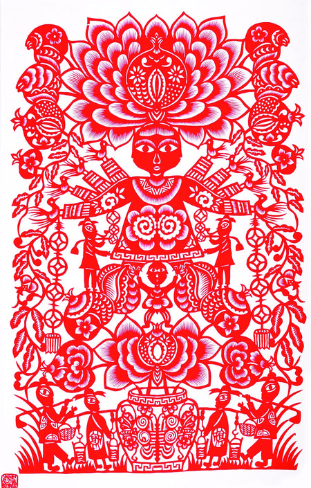 剪紙藝術(shù)題材多體現(xiàn)在祈福求安、避邪娛樂、孝道祭祀、喜事慶賀等等,例如五福娃娃、連年有余、大紅喜字、剪紙風(fēng)格也多樣化、多元化,剪紙作品一般初期主要是以對稱圖案為主,中后期主要發(fā)展成人物頭像、大型復(fù)雜圖案畫及反映和宣傳時(shí)代氣息的、人們喜聞樂見的多元素圖案,也將古代藝術(shù)和現(xiàn)代特征結(jié)合起來給人渲染一種藝術(shù)美、社會美、時(shí)代美的視覺欣賞、其作品妙趣橫生,秀美遒勁,雄渾大氣,喜聞樂見,愛不釋手,廣泛流傳在城鄉(xiāng)之間。當(dāng)下,剪紙藝術(shù)作為非物質(zhì)文化遺產(chǎn),深受社會各個(gè)階層的人士喜愛,把剪紙精神發(fā)揚(yáng)光大。傳承非遺,是我們共同的使命。