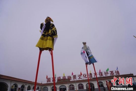 2006年,經(jīng)永登縣文化館申報,“苦水高高蹺”被列入第一批國家級非物質(zhì)文化遺產(chǎn)保護名錄,巨海全成為其中一名省級傳承人。他說,當時雖沒聽說過這個名詞,但也感受到了肩上沉甸甸的傳承責任,帶領(lǐng)高高蹺隊前往上海、北京、敦煌等地演出,讓更多人喜歡上木棍上的“空中戲劇”。