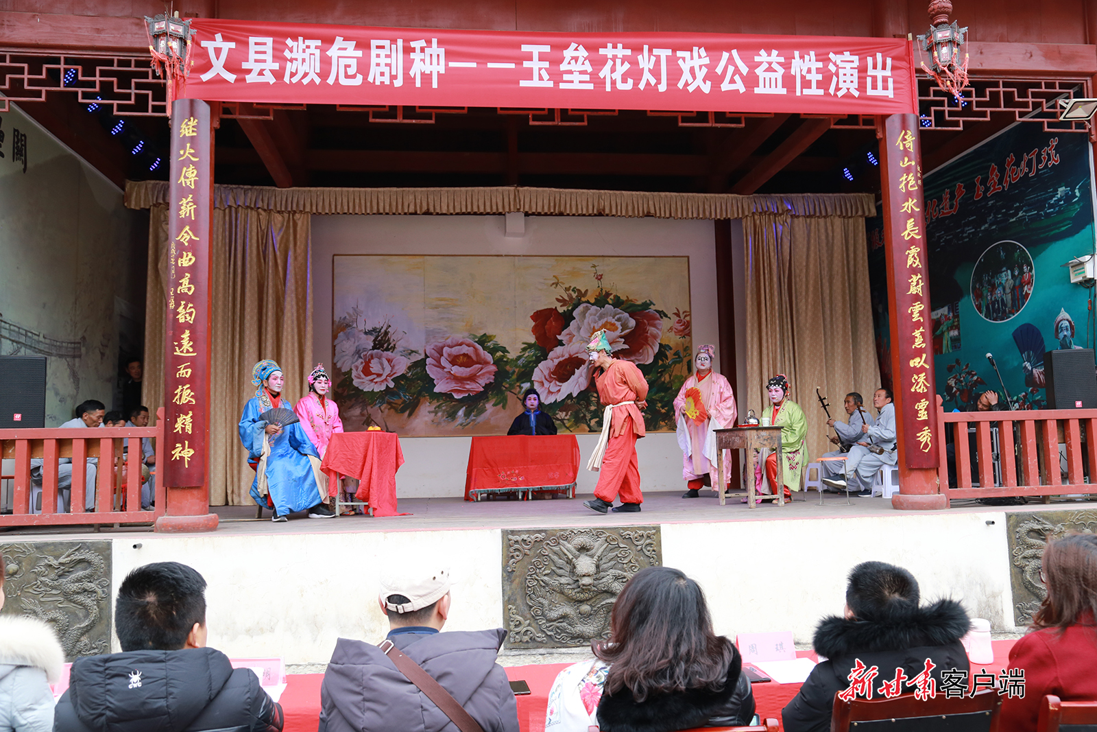2月15日,甘肅省文化藝術(shù)研究院《中國戲曲劇種全集》課題組在文縣玉壘鄉(xiāng)玉壘坪村開展花燈戲田野調(diào)查展演。文縣玉壘花燈戲是我省的傳統(tǒng)戲曲劇種之一,歷史悠久,特色鮮明,在玉壘鄉(xiāng)一帶群眾中廣泛流傳,是甘肅省級非物質(zhì)文化遺產(chǎn)。
