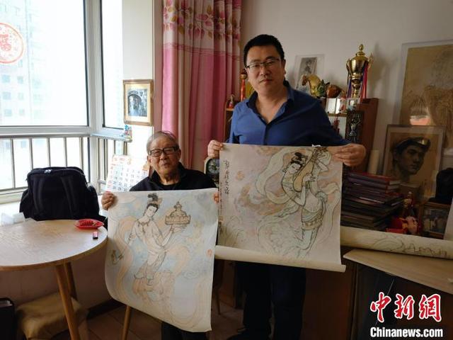 3月上旬,《絲路花雨·誕生》作者陳曉斌(右)拜訪今年86歲的舞美設(shè)計師李明強(右)老先生?!⊥跸让稀z