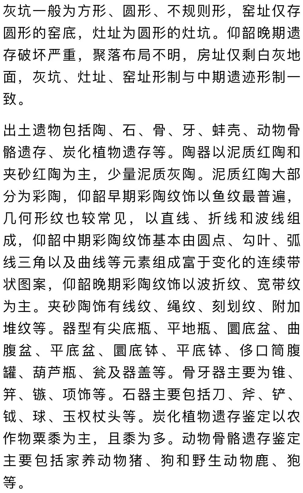 2021年清理包括仰韶、齊家、漢、宋、明時(shí)期遺跡950余處。其中仰韶文化遺跡870處,漢代遺跡42處,宋明墓葬41座。