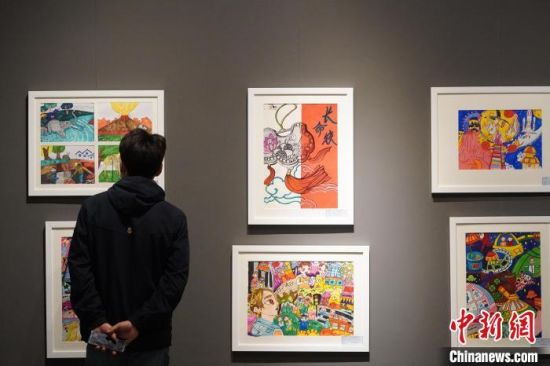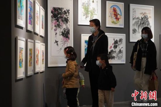 5月15日,甘肅蘭州,市民參觀少兒美術展覽。