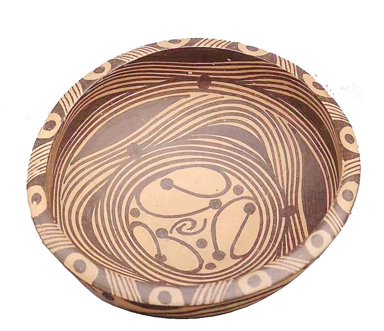 “這個彩陶盆做工精美,水波紋線條流暢優(yōu)美,真漂亮!”