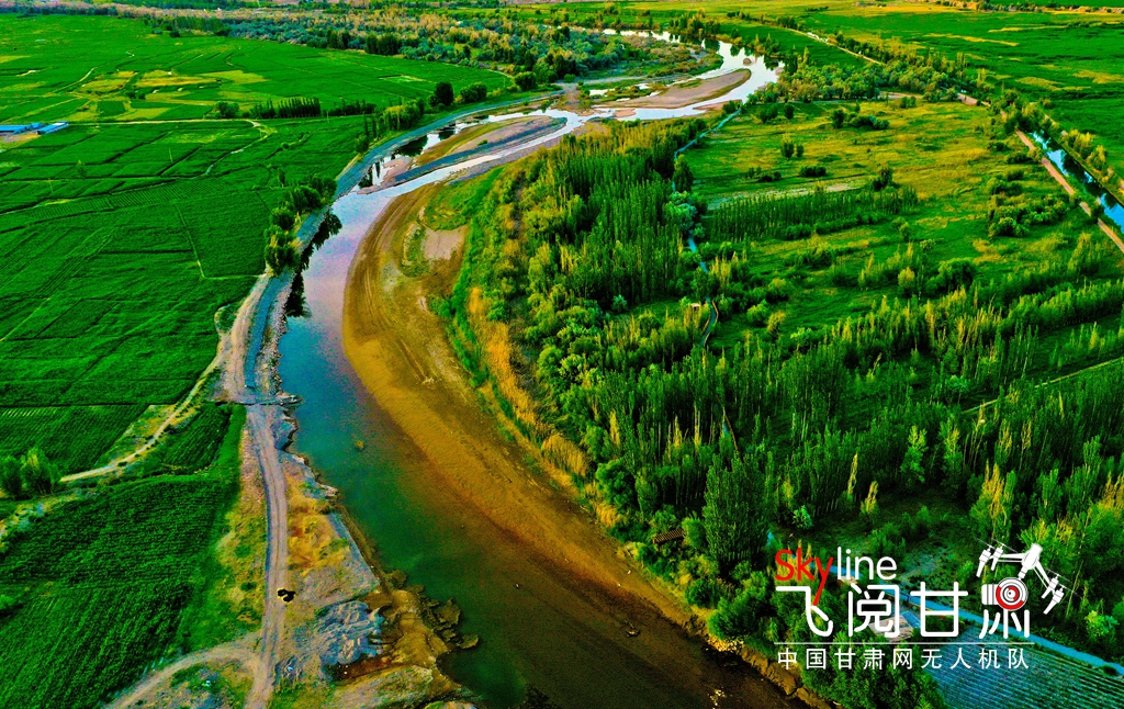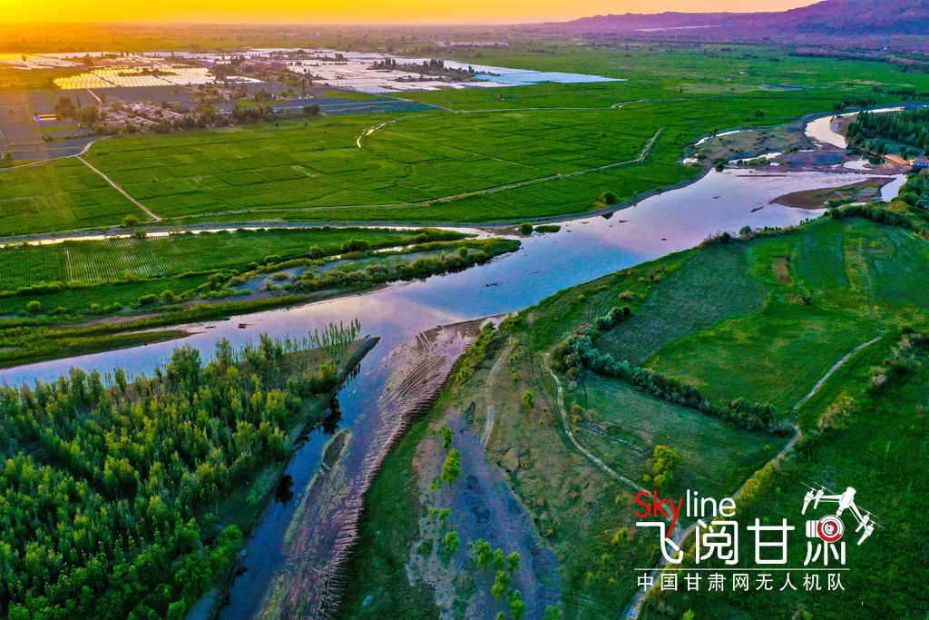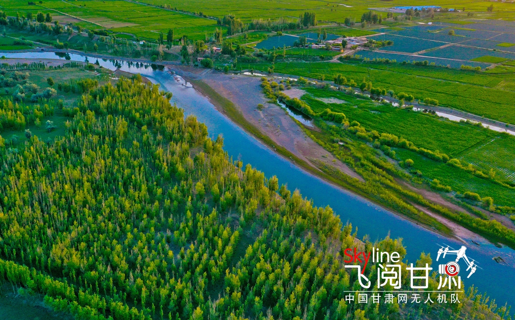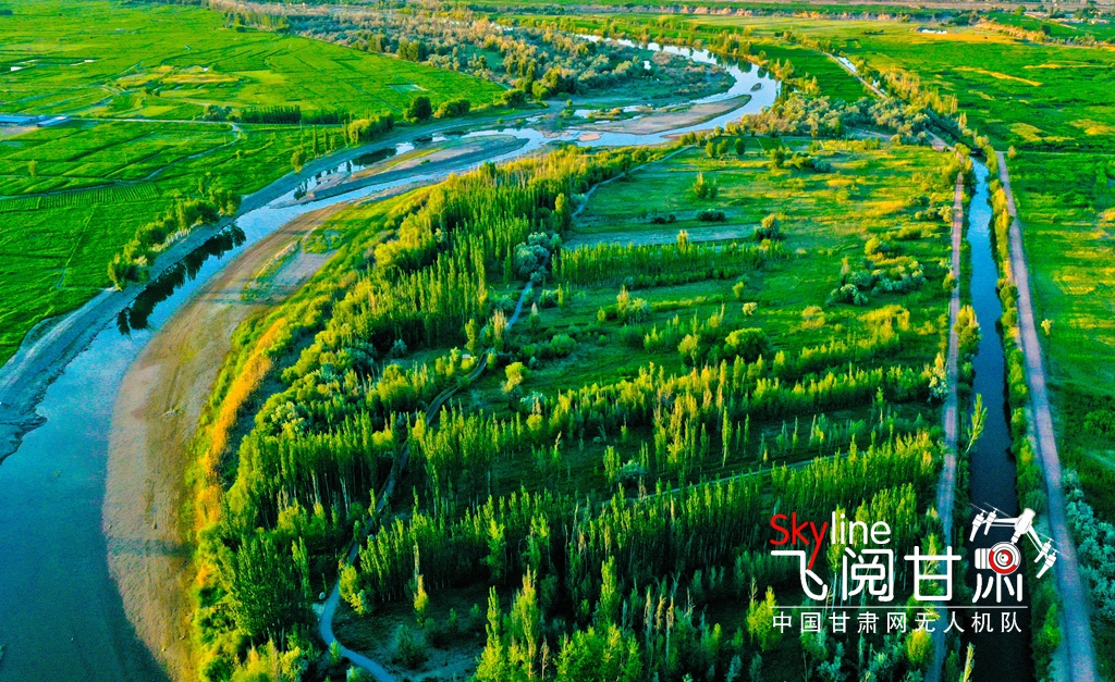 6月15日,位于張掖市甘州區(qū)靖安鄉(xiāng)、烏江鎮(zhèn)境內(nèi)的黑河兩岸,在夕陽的映照下綠意盎然,盡顯勃勃生機,構(gòu)成了一幅綠色美景畫卷。
