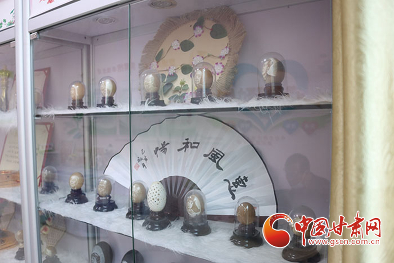 自2018年開始,蘭州新區(qū)新安社區(qū)為劉財(cái)萬的蛋雕作品專設(shè)了社區(qū)展柜,劉財(cái)萬可以為前來參觀的人們講解作品內(nèi)涵、展示創(chuàng)作過程。對劉財(cái)萬來說,這不但可以更好傳播蛋雕文化,也是分享自己生命體悟、生活方式的一個(gè)出口。