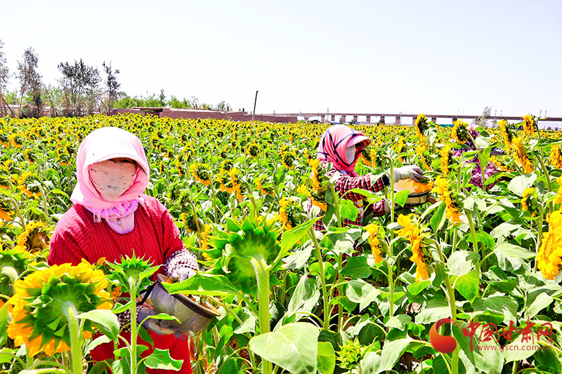 “今年,我們長莊村結(jié)合高標(biāo)準(zhǔn)農(nóng)田建設(shè)項(xiàng)目的實(shí)施,年初流轉(zhuǎn)土地一千多畝,與合作社合作引進(jìn)葵花制種一千多畝,這既增加了我們村集體的經(jīng)濟(jì)收入,而且就近吸納勞動(dòng)力,每天有五六十人在葵花基地打工,滿足了老百姓就地務(wù)工的需求。”臨澤縣新華鎮(zhèn)長莊村黨支部書記宋洋說。
