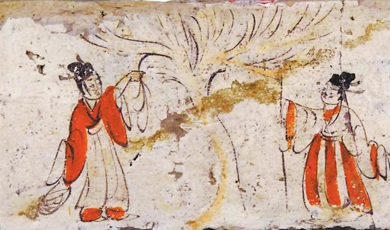 采桑圖 出自嘉峪關(guān)魏晉墓磚畫