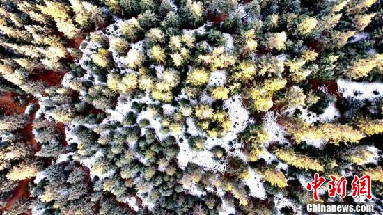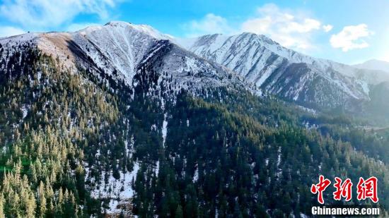今年截至11月4日,中國(guó)東北地區(qū)大部、新疆、青海、西藏、內(nèi)蒙古、甘肅等地都已經(jīng)進(jìn)入氣象意義上的冬季。圖為薄雪覆蓋山巒和林區(qū)。