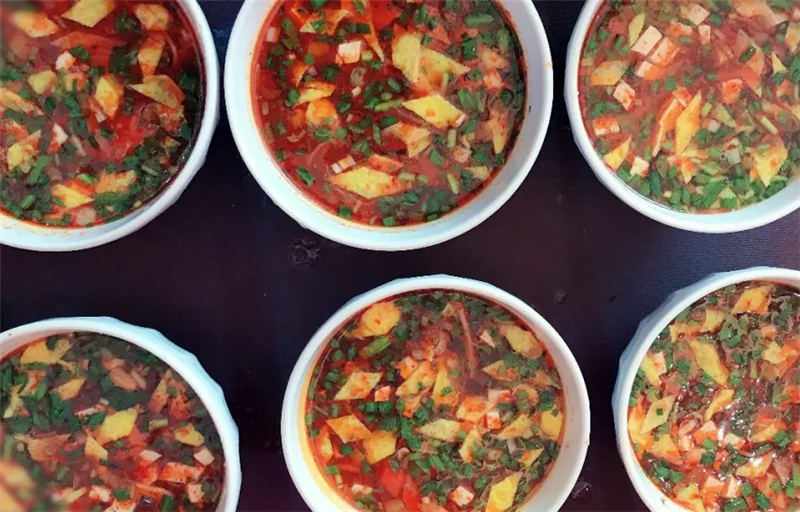 盛一碗細(xì)面,再澆些許酸湯,酸中帶辣、柔軟耐嚼、湯香撲鼻,開胃爽口、色香味俱佳。特別是夏季時分,一碗酸湯面絕對是開胃醒腦又提神的不二之選。