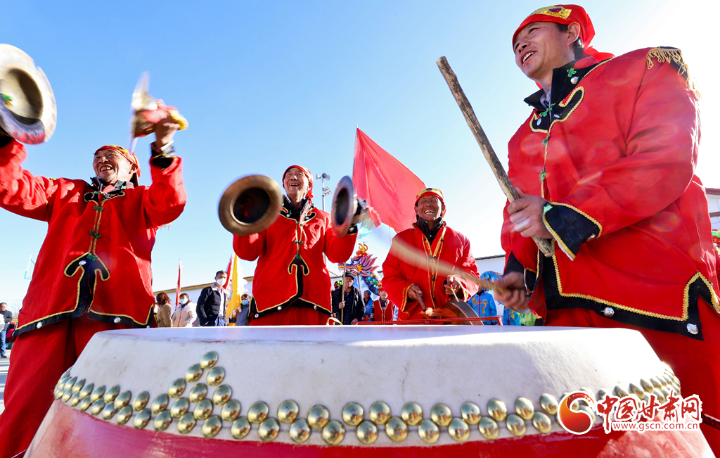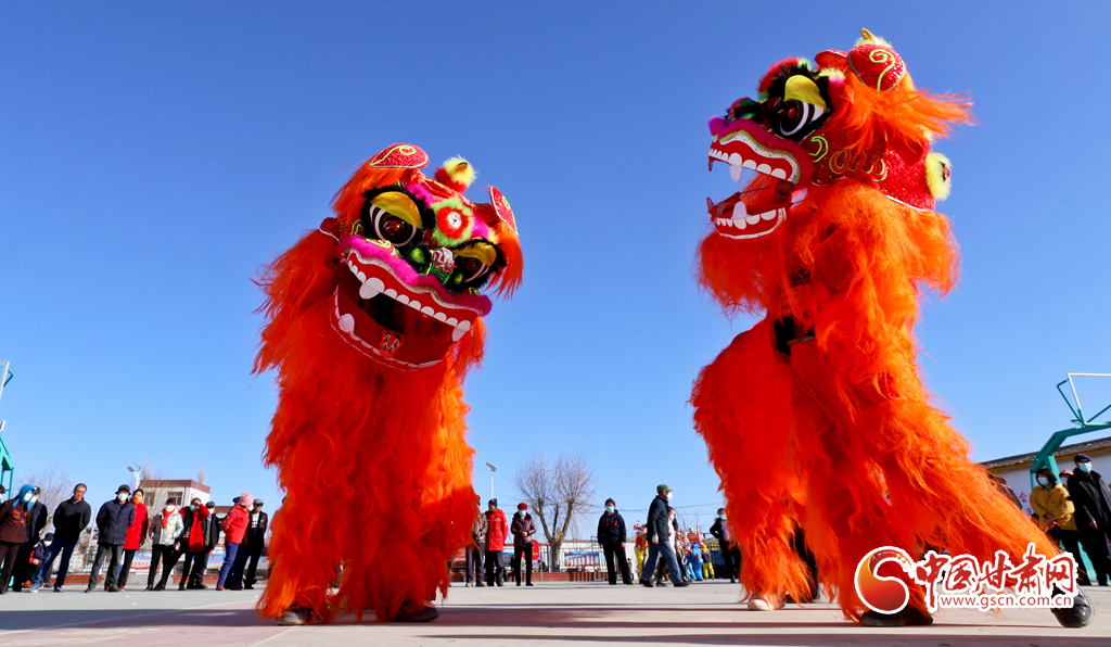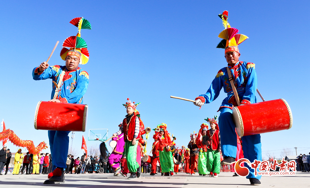 1月9日,甘肅省張掖市甘州區(qū)花寨鄉(xiāng)的社火表演隊(duì)正在文化廣場上加緊排練。