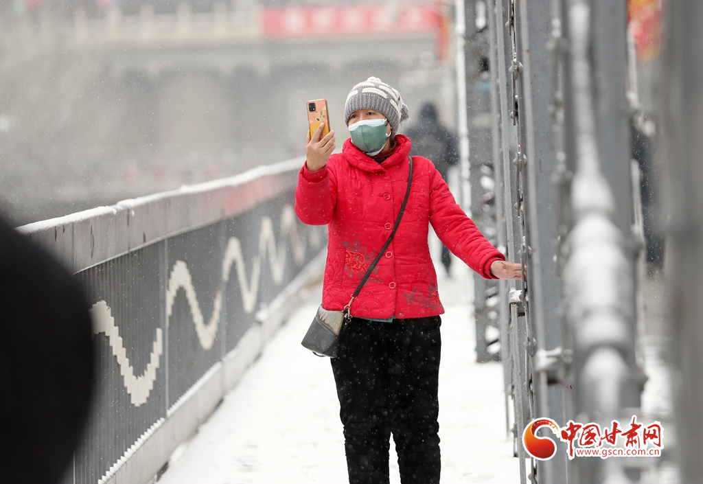 2月8日,受冷空氣影響,省城蘭州迎來兔年首場(chǎng)降雪天氣,伴隨著降雪而來的降溫難擋人們的熱情,許多市民紛紛走出家門,踏雪賞景。