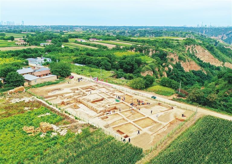 甘肅慶陽(yáng)市南佐新石器時(shí)代遺址核心區(qū)大型宮殿建筑發(fā)掘現(xiàn)場(chǎng)(2022年8月23日攝)。