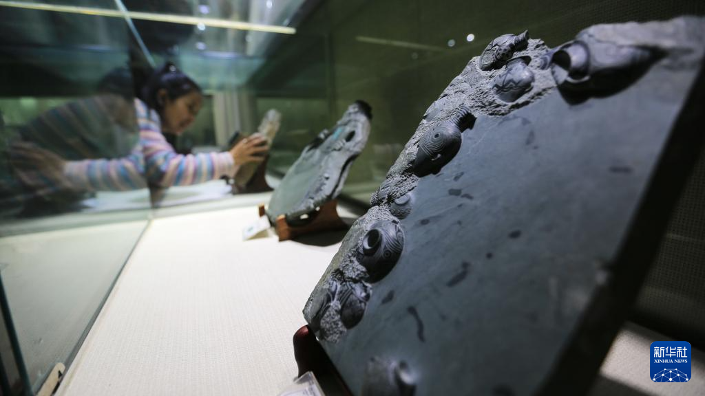 10月24日在甘肅省定西市臨洮縣洮硯藝術(shù)館拍攝的洮硯。新華社發(fā)(王克賢 攝)