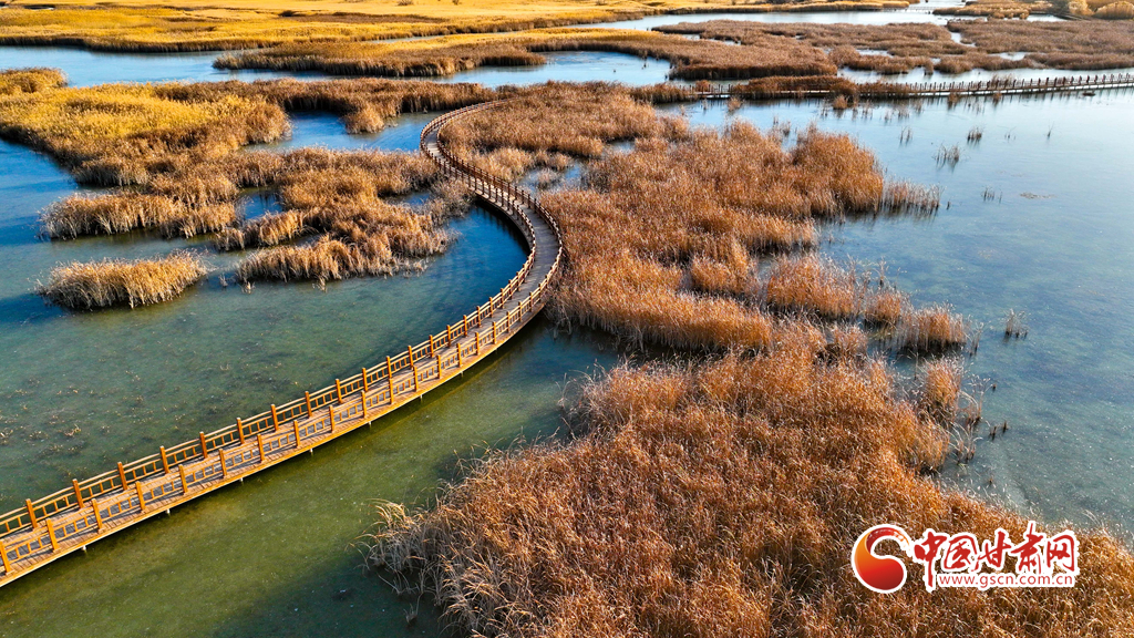 初冬時(shí)節(jié),張掖黑河濕地國(guó)家級(jí)自然保護(hù)區(qū)的蘆葦、蒲草等植物在秋風(fēng)、冬霜的吹拂下都變成了金黃色,密密的蘆花舞動(dòng)著裊娜的身姿,倩影婆娑,蘆葦叢里鳥(niǎo)鳴啾啾,整個(gè)濕地成為了一片金色的童話世界,讓人產(chǎn)生無(wú)限遐思。