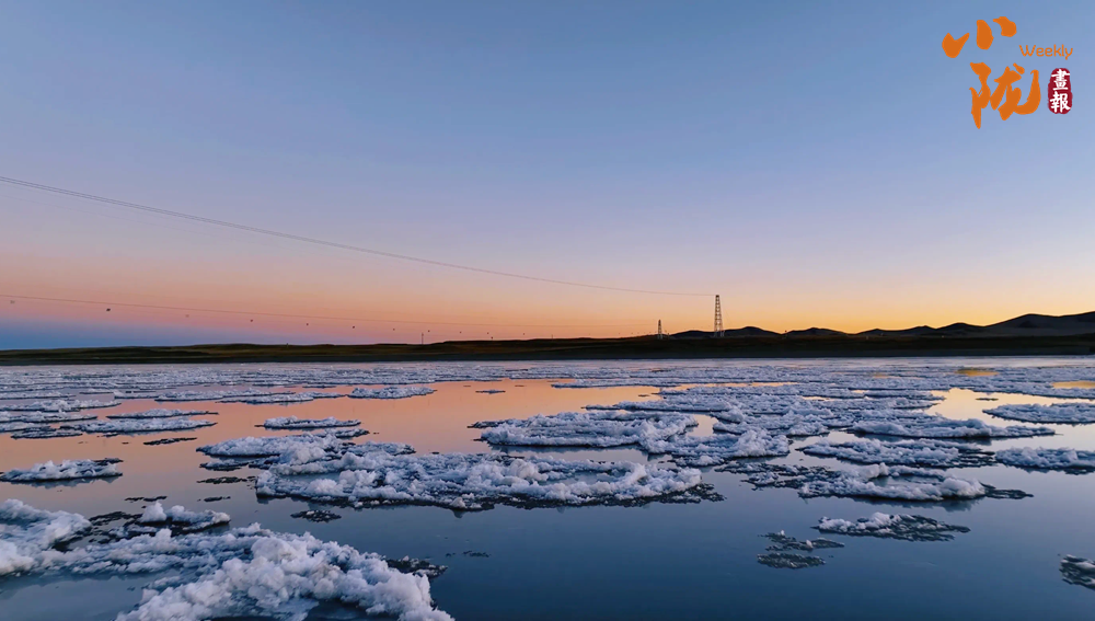 日落時分,蜿蜒黃河上,霞光籠罩、光波跳動,景致壯美迷人。形狀不一的流凌,在光線的折射下像珍珠如瑪瑙,鑲嵌在母親河上。