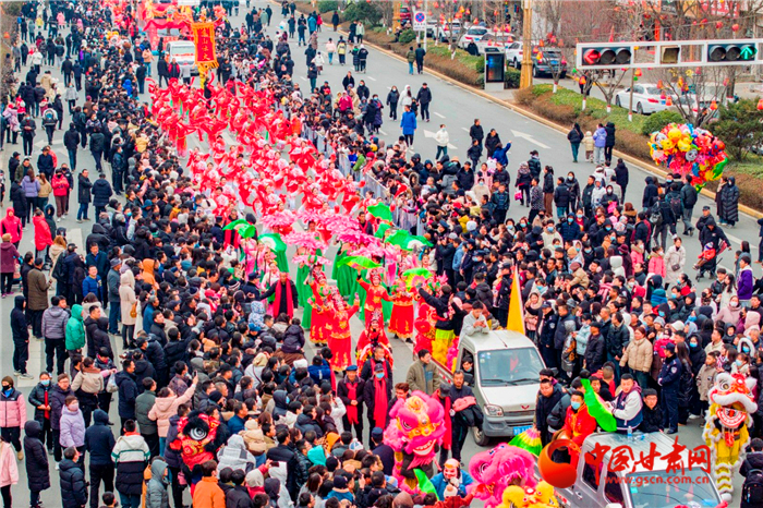 上午9時(shí),來自蓮花鎮(zhèn)、五營鎮(zhèn)、隴城鎮(zhèn)、郭嘉鎮(zhèn)、秦安血漿站等17個(gè)鎮(zhèn)5個(gè)行業(yè)企業(yè)的1300余名隊(duì)員們伴著寒風(fēng)雪花,以特有的喜慶方式向全縣群眾拜年,為全縣各族群眾送上了一份別具特色的新年禮物。