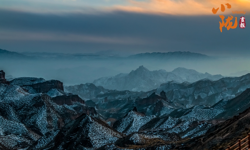 白雪輕輕地覆蓋在時隱時現(xiàn)的斑斕地貌上,丹霞上空云霧繚繞,置身其中仿佛走進了夢幻般的世界。