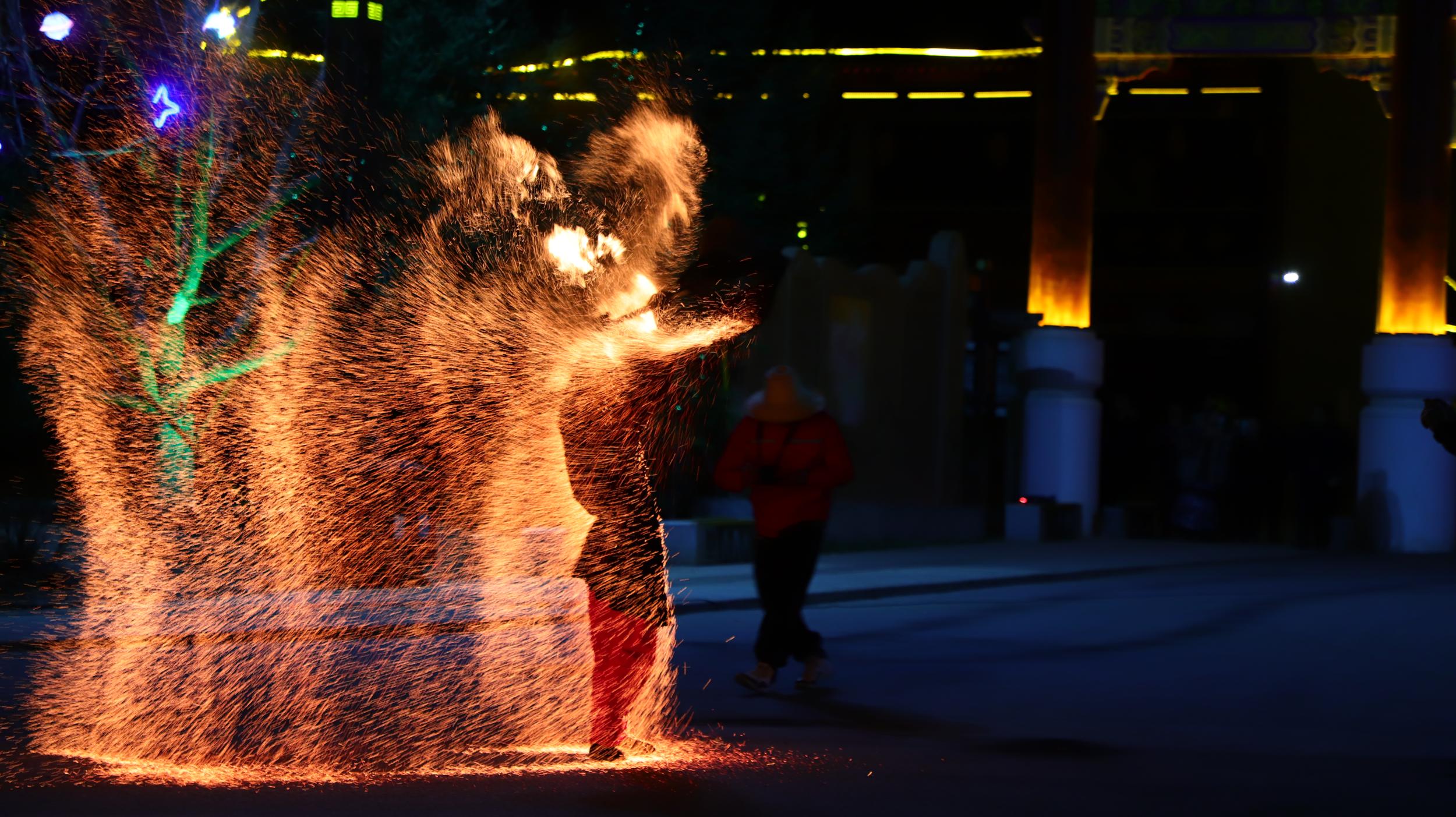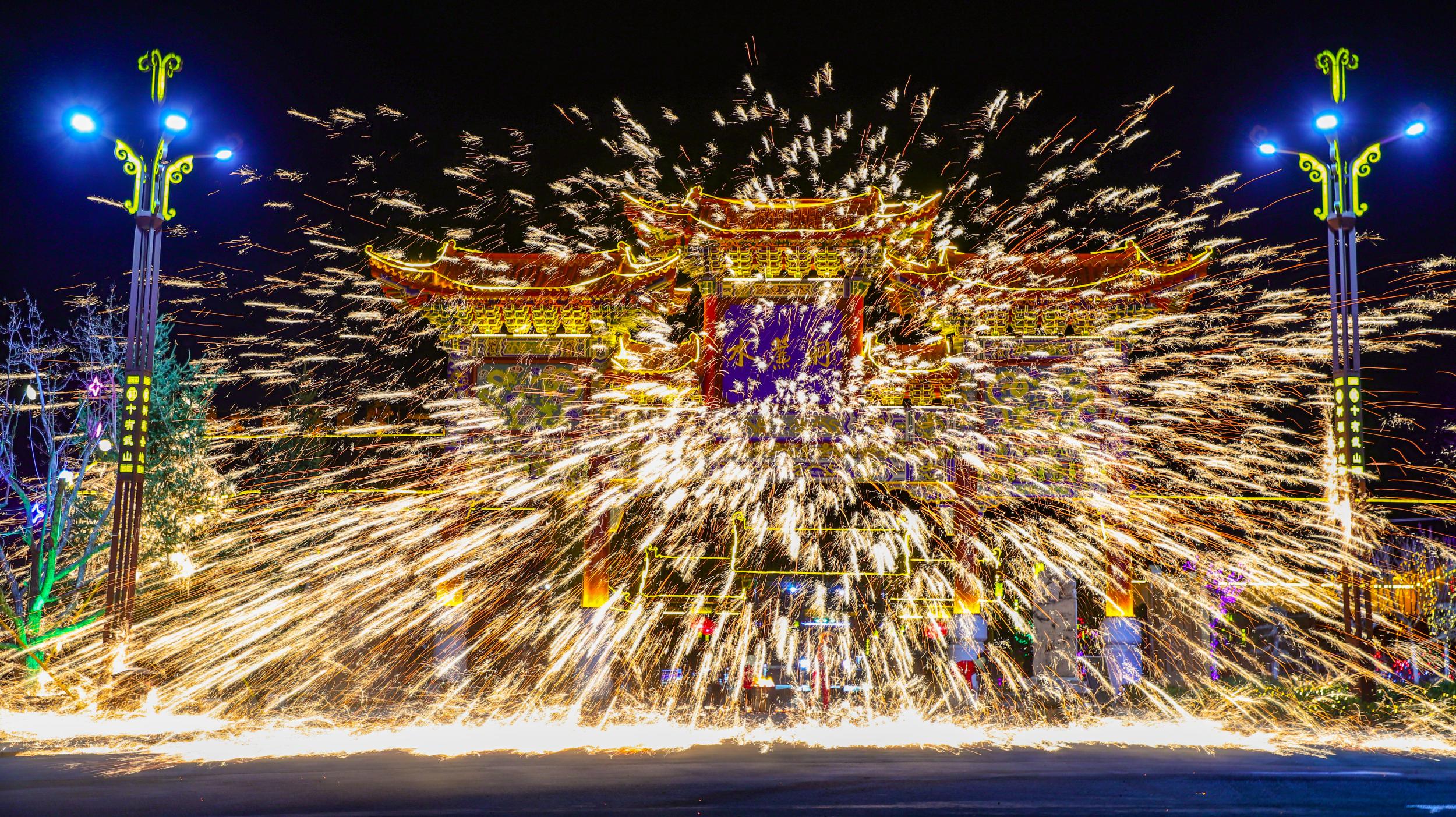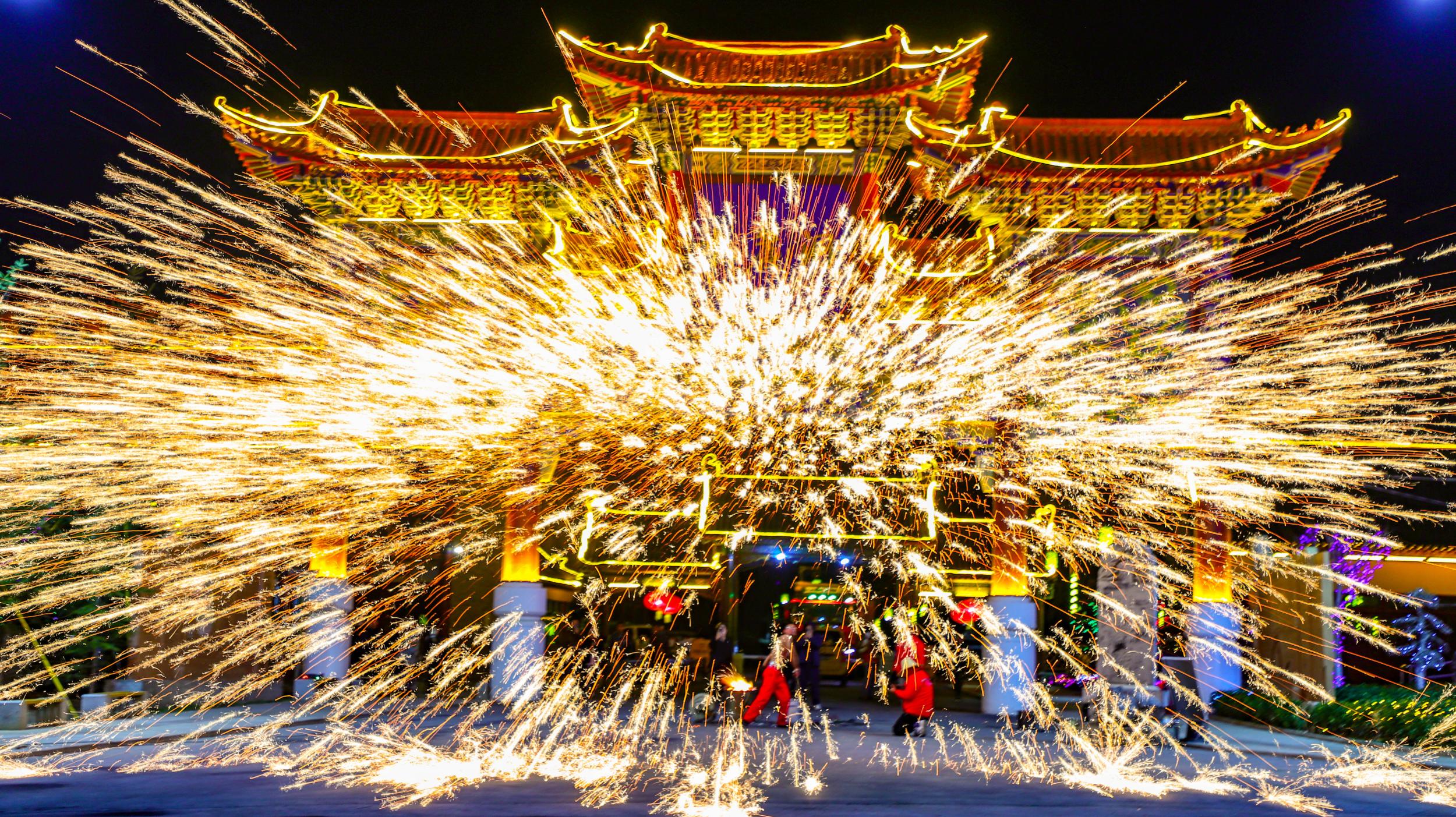 非遺絕技“打鐵花”點(diǎn)靚水簾洞景區(qū)不夜天