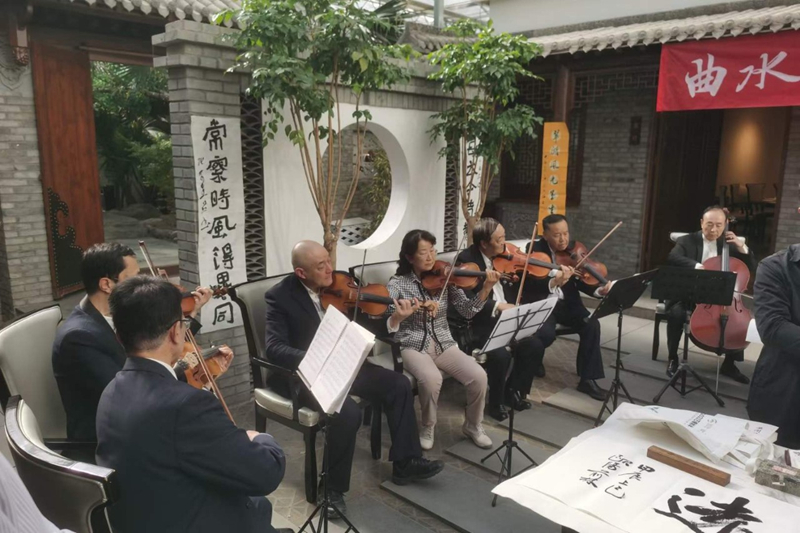 曲水流觴,酒水泛香,墨水濡毫,兩行究平仄,樂陪君子清談。