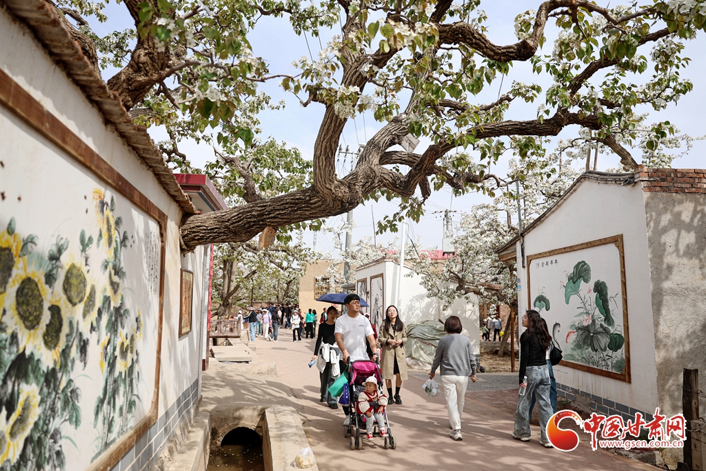 4月13日,位于甘肅省蘭州市皋蘭縣什川鎮(zhèn)的百年梨園綻放如雪,吸引眾多游客前來踏青賞花。