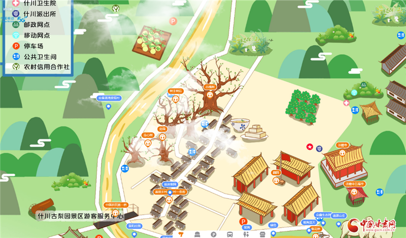 由于百年古梨園位于村落之間,占地面積大且道路蜿蜒曲折,許多外地游客在這里總會因?yàn)槁窙r不熟或者看不懂紙質(zhì)地圖而走很多冤枉路。針對游客的這一痛點(diǎn),中國移動甘肅公司蘭州分公司依托云網(wǎng)融合和數(shù)字化服務(wù)優(yōu)勢,為什川梨園及周邊景區(qū)量身打造了5G+VR手繪地圖智慧導(dǎo)覽服務(wù),根據(jù)當(dāng)?shù)仫L(fēng)格特色定制手繪地圖,展示當(dāng)?shù)鼐包c(diǎn)及場所地標(biāo)名稱,并可結(jié)合語音講解充分展現(xiàn)歷史背景、文物故事、人物典故等景區(qū)相關(guān)信息,真正讓每一位游客感受到“一部手機(jī)游梨園”的便利。