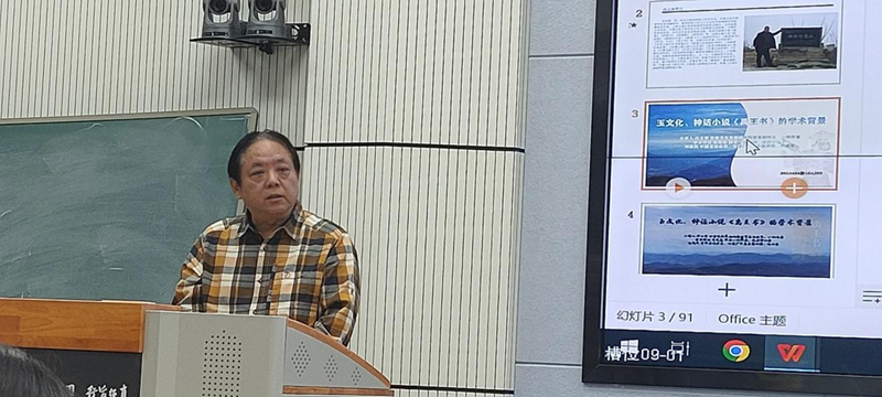 馮玉雷一直認(rèn)認(rèn)真真,埋頭干事。他心中有一個(gè)非常宏大的目標(biāo),向著這個(gè)目標(biāo)行進(jìn)過程中,腳踏實(shí)地。前幾年他在西北師范大學(xué)首開公選課《中國玉文化》,把玉文化作為專門的一門課來講,具有開拓性。玉文化作為一門學(xué)科,在全國各大高校此前還沒有先例,馮玉雷先生做了一件非常有意義的事情。這次講座對(duì)我非常有啟發(fā)。從這門課的內(nèi)涵來講,其實(shí)又是一個(gè)延續(xù):對(duì)傳統(tǒng)文化也好,考古文化也好,對(duì)甘肅省乃至整個(gè)中華大地,從玉文化開始出現(xiàn),發(fā)展到現(xiàn)在,就是一種延續(xù)。玉和玉器至堅(jiān)至柔,至圣至潔,卻默默無言,但是它們告訴了我們很多以前不知道或者沒有意識(shí)到的信息,從重見天光的那一刻起,有無數(shù)信息在源源不斷的釋放,就看人們?nèi)绾卫斫?,如何解讀。如果不研究、發(fā)現(xiàn)這些玉器的內(nèi)涵,那還是相當(dāng)于某種意義上的沉睡。馮玉雷創(chuàng)作小說,研究玉文化,還組織十幾次考察活動(dòng),國內(nèi)的有些大家都參與,這像不像流動(dòng)的學(xué)術(shù)討論會(huì)?他的長篇小說《禹王書》出版剛剛一個(gè)月,據(jù)我所知,“玉文化、神話小說《禹王書》的學(xué)術(shù)背景”講座是首次分享,他把研究成果、創(chuàng)作成果第一時(shí)間通過課堂與同學(xué)們分享,我仿佛看到他帶著學(xué)生勇往直前,義無反顧地向前走著,這本身就是玉文化精神的傳承和發(fā)揚(yáng)!我感覺到馮玉雷《禹王書》的思緒上下翻飛,縱橫馳騁,騰躍五千年。小說中有非常核心的價(jià)值內(nèi)涵,就是玉文化本身所具有的、深深進(jìn)入到我們民族根脈中的文化內(nèi)涵,同時(shí),又有就是對(duì)文學(xué)的一種激發(fā)。小說中的神話人物以及他們之間的交流、故事、語言,還有那些玉器,都非常神奇??梢灶A(yù)想,這本書的后延性非常長遠(yuǎn),希望玉文化班的同學(xué)能夠在馮玉雷老師帶領(lǐng)下,傳承發(fā)揚(yáng)玉文化,完成從璞玉到玉器的轉(zhuǎn)化!