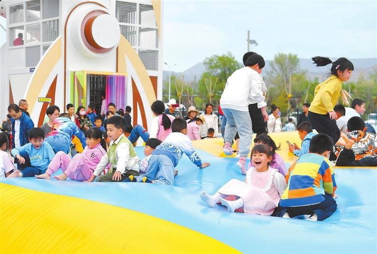 孩子們在洮河如意灣親子樂園功能區(qū)快樂玩耍。新甘肅·甘肅日報記者 馬伊星