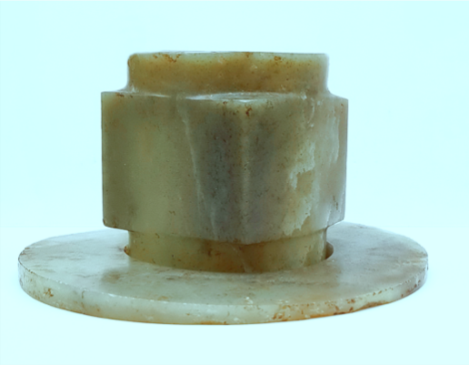 胡家底遺址發(fā)現(xiàn)的三對玉璧和玉琮,每對材質(zhì)基本相同,玉璧中孔可套疊在琮之射端,可見當年有可能套疊使用以祭祀天地。