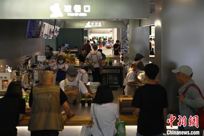 6月19日,甘肅省博物館藝術(shù)生活館在甘肅蘭州開(kāi)館。該館是甘肅省博物館打造的一處復(fù)合型高價(jià)值文化空間,融合了咖啡、烘焙、展覽、藝術(shù)書(shū)店、文創(chuàng)銷(xiāo)售等多樣化業(yè)態(tài)。圖為游客在咖啡區(qū)排隊(duì)等待。中新社記者 李亞龍 攝