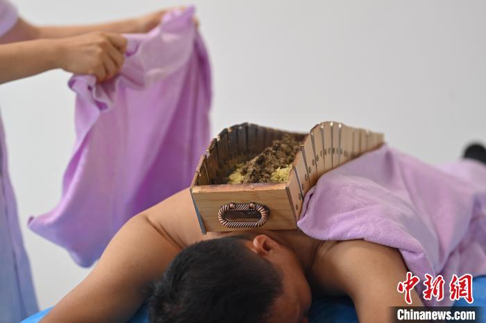7月16日,甘肅省平?jīng)鍪徐`臺縣皇甫謐針灸康養(yǎng)館內(nèi),工作人員對患者進行推拿治療。2006年,靈臺皇甫謐針灸術(shù)入選第一批甘肅省非物質(zhì)文化遺產(chǎn)名錄。靈臺作為皇甫謐故里,當?shù)孛癖姺浅UJ可中醫(yī)康養(yǎng),針灸、拔火罐、推拿、葫蘆灸、火龍灸(督脈灸)等中醫(yī)特色療法受到了很多人的青睞,當?shù)毓俜揭餐ㄟ^舉辦大型節(jié)會等助推中醫(yī)康養(yǎng)產(chǎn)業(yè)發(fā)展。 皇甫謐是針灸醫(yī)學鼻祖,其《針灸甲乙經(jīng)》已在多個國家被廣泛傳播應用。  中新社記者 李亞龍 攝