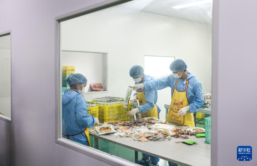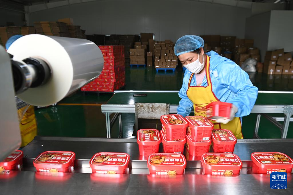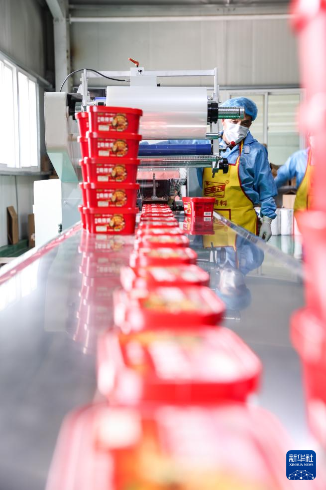 7月22日,工作人員在甘肅天水市一家麻辣燙企業(yè)車(chē)間內(nèi)包裝產(chǎn)品。新華社記者 呂帥 攝