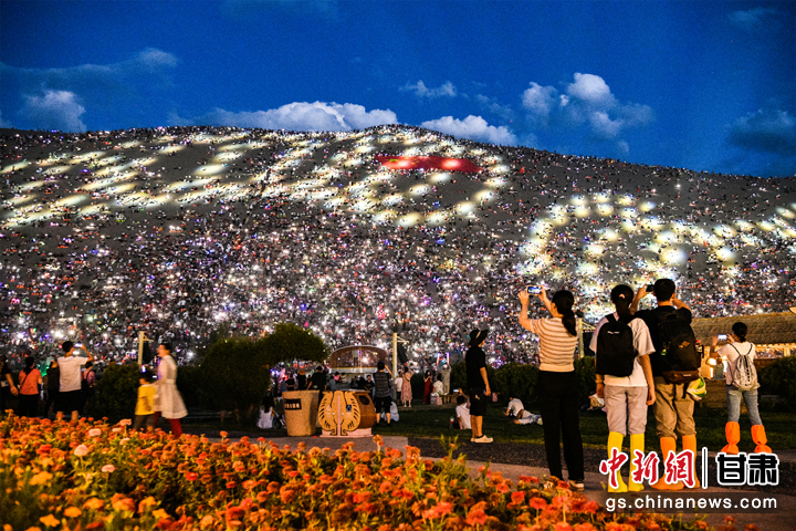盛夏7月,每當(dāng)夜幕降臨后,甘肅省敦煌市鳴沙山月牙泉景區(qū)被精心布置的燈光點亮,上萬名游客手機的燈光與天空中的繁星交相輝映,營造出一種夢幻般的浪漫氛圍。