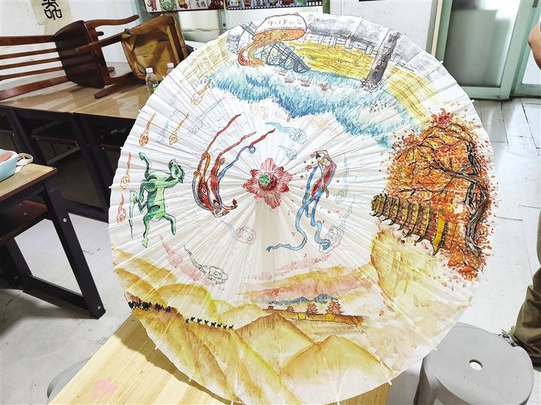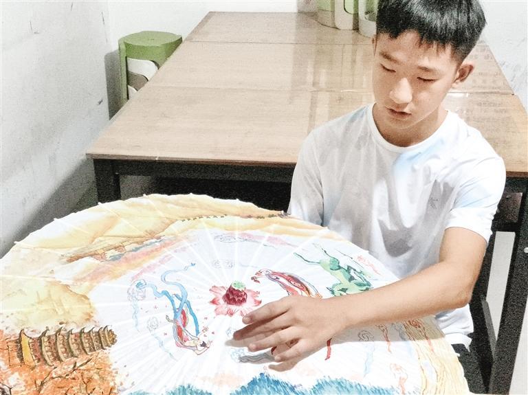 少年執(zhí)筆繪巧思在油紙傘上講述絲路故事