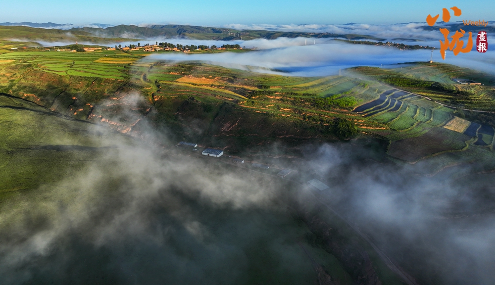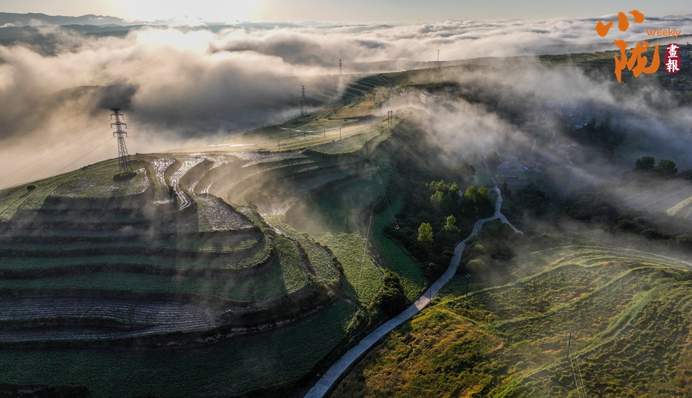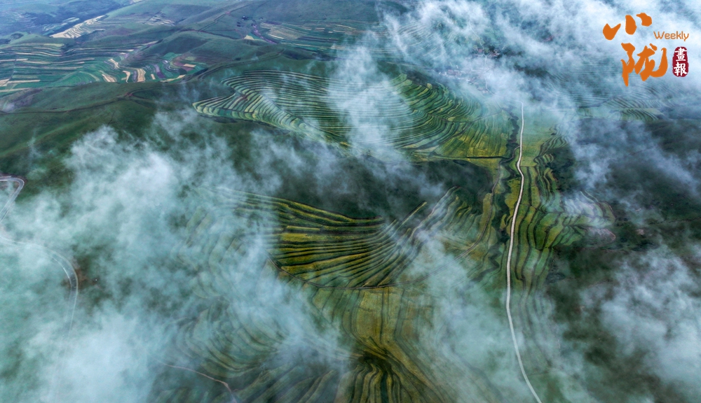 一場(chǎng)秋雨過(guò)后,甘南臨潭連綿的群山被云霧籠罩,星羅棋布的梯田上迎來(lái)收獲期,稻浪滾滾,美不勝收。