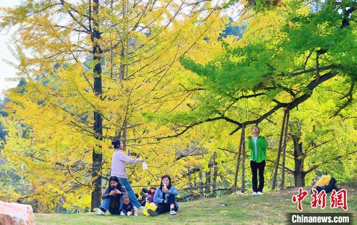 中新網(wǎng)蘭州10月28日電(高展)“霜降”過后銀杏黃。秋陽映照下,甘肅隴南市徽縣嘉陵鎮(zhèn)田河村宛如披上絢麗新裝,詩意夢幻。此地四周青山環(huán)抱,嘉陵江如靈動(dòng)絲帶蜿蜒流淌,水豐土腴、氣候溫潤,為銀杏營造絕佳生長環(huán)境?;湛h委副書記、縣長王福全稱,銀杏,不僅承載著千年的歷史沉淀,更以其獨(dú)特的風(fēng)姿和韻味,成為徽縣一張亮麗的名片。