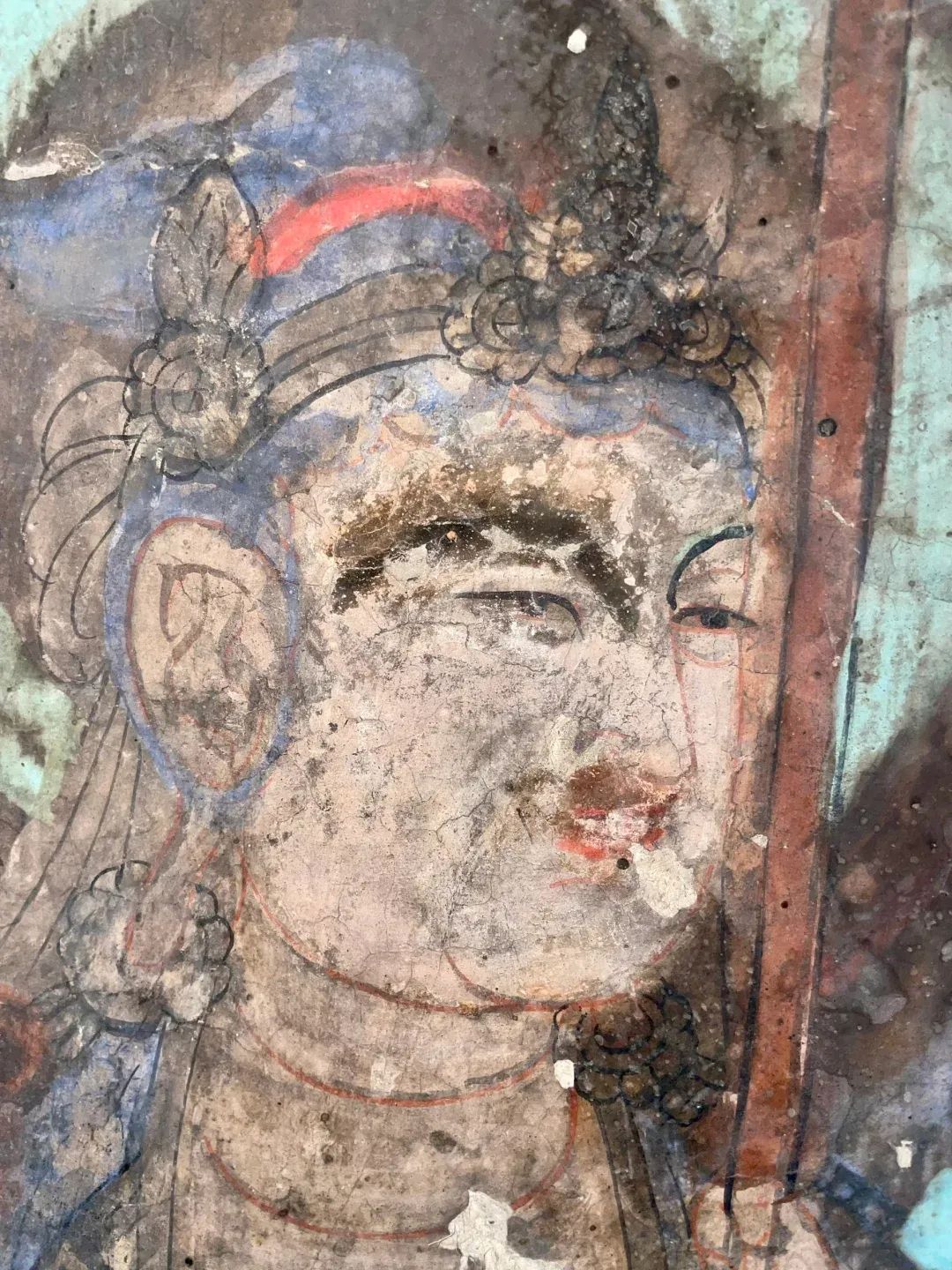 昌馬石窟第1、2、4窟表層西夏時(shí)期所繪壁畫的內(nèi)容,用色及菩薩的服裝等極接近敦煌莫高窟第328、327窟和榆林窟第17窟西夏壁畫。其用筆比較端莊拘謹(jǐn),不似唐代自由流暢;用色以赭紅、大綠為主;人物造像尤其是菩薩形象程式化,菩薩衣飾華麗復(fù)雜,但神態(tài)略顯呆板,不似唐代優(yōu)美生動(dòng)和神采煥發(fā);裝飾圖案繁縟化,這些都與敦煌莫高窟、瓜州榆林窟、肅北五個(gè)廟同時(shí)期的壁畫具有統(tǒng)一的時(shí)代風(fēng)格。