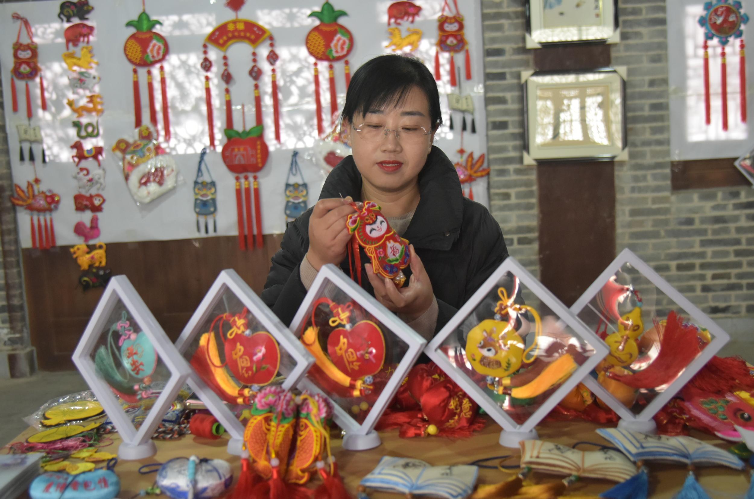 除了剪紙,鎮(zhèn)原縣香包、刺繡、書法等傳統(tǒng)文化藝術氛圍也很濃厚,深受廣大群眾喜愛。在文化一條街,十幾家書畫、香包、刺繡工作室緊挨,組成了一條文化長廊,除了銷售文創(chuàng)產品外,還承擔著非遺文化傳承和技藝培訓,熱鬧而又成氣候。“作為一名非遺傳承人,不僅要把自己的香包刺繡產品設計好、做精致,更重要的是要把這門技藝教給更多的人,讓香包、刺繡這門技藝更好地傳承下去。”慶陽香包刺繡非物質文化遺產傳承人任艷艷說,自己在文化一條街已經開店近十年了,帶出了很多巧媳婦巧婆婆,還不時受邀在縣內外進行培訓指導。