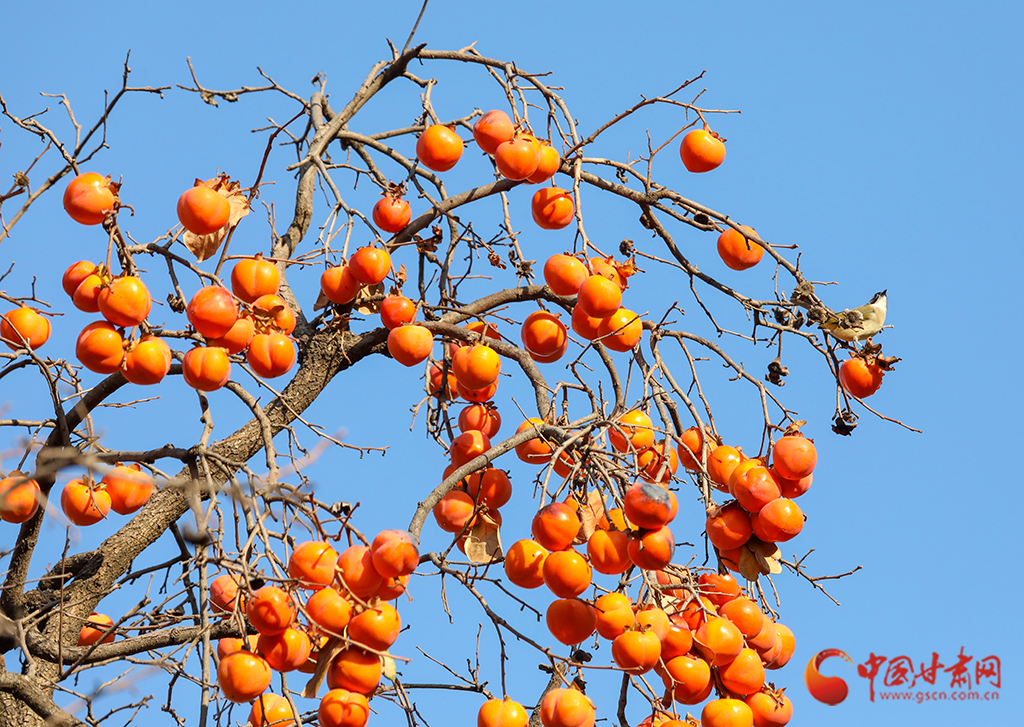 秋去冬來,萬物沉寂。在平?jīng)龀缧?,柿子樹上掛滿了果實,又是一年柿子紅。
