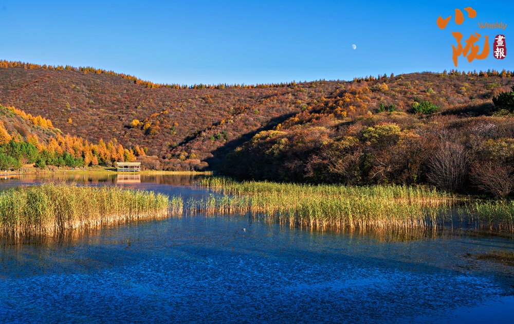 群山環(huán)抱里的朝那湫,水面開(kāi)闊,清澈透明,周圍層林盡染,藍(lán)天、蘆葦?shù)褂霸诿鲀舻乃嫔?,恰似一幅絕妙的山水風(fēng)景圖。