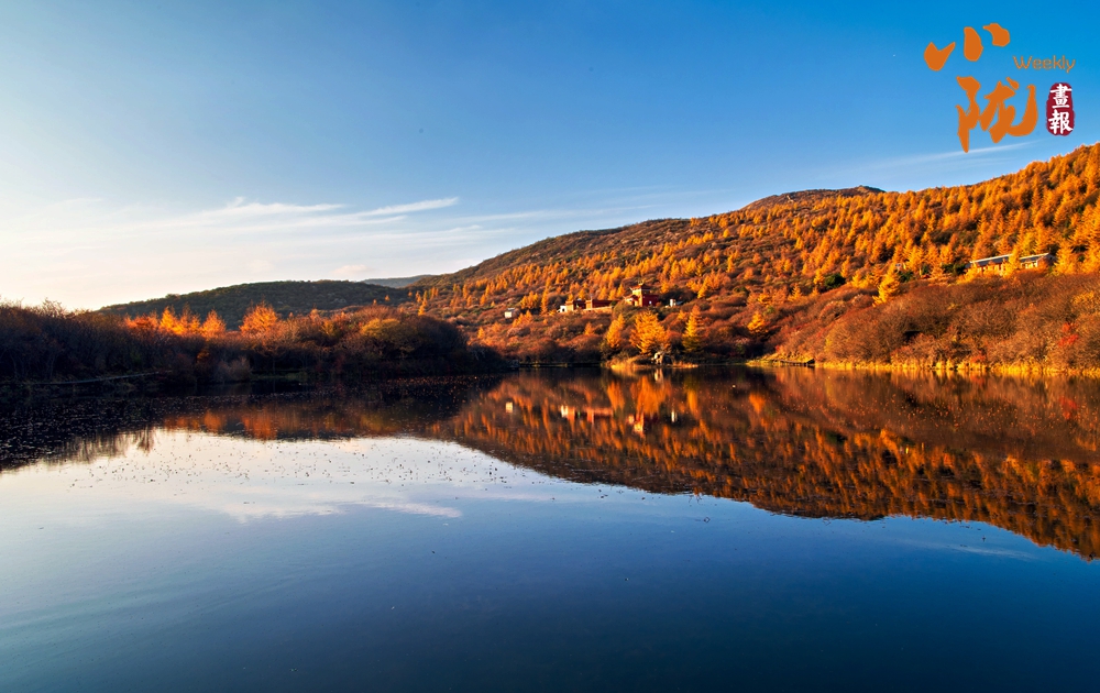 冬日黃昏的余光鋪灑在山間,山映水中,水流山間,湫映碧綠,山光水色,渾然一體,相得益彰,如詩(shī)如畫。