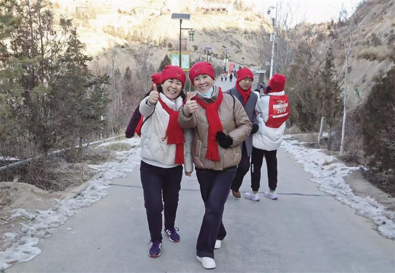 活動中,選手們帶著滿滿的祝福,或三五成群、或二人為伴,沿著景區(qū)步道拾級而上,在樹蔭環(huán)繞的大自然中呼吸著新年第一天的空氣,感受放飛心情、登高望遠的愜意。