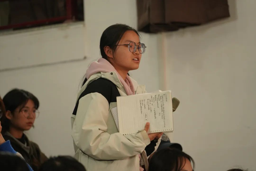 嘉賓發(fā)言環(huán)節(jié)結束后,同學們積極提問,林紅衛(wèi)從多個寫作角度解答了大家的困惑。她強調,寫作需要用心觀察生活,通過反復練習將情感外化為行動,傳遞生活中的真善美。