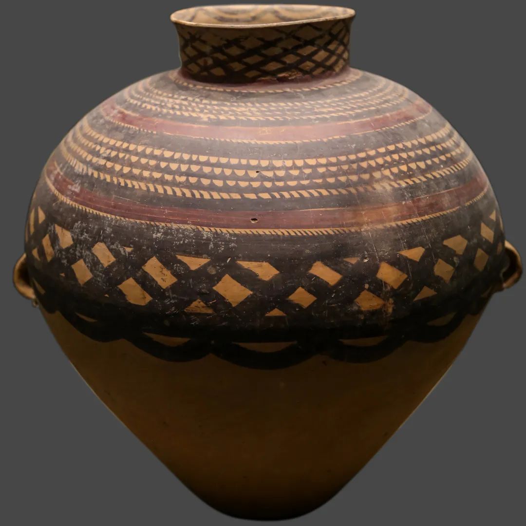 馬家窯文化如黃河上游的基因庫(kù),約公元前3300年萌芽于甘肅定西臨洮,承仰韶文化西進(jìn)之火種,以洮河為血脈、黃土為肌理,在旋轉(zhuǎn)的陶輪間淬煉出黑彩翻涌的史前藝術(shù)密碼,成為西北大地孕育新石器文明的第一縷熾熱胎動(dòng)。