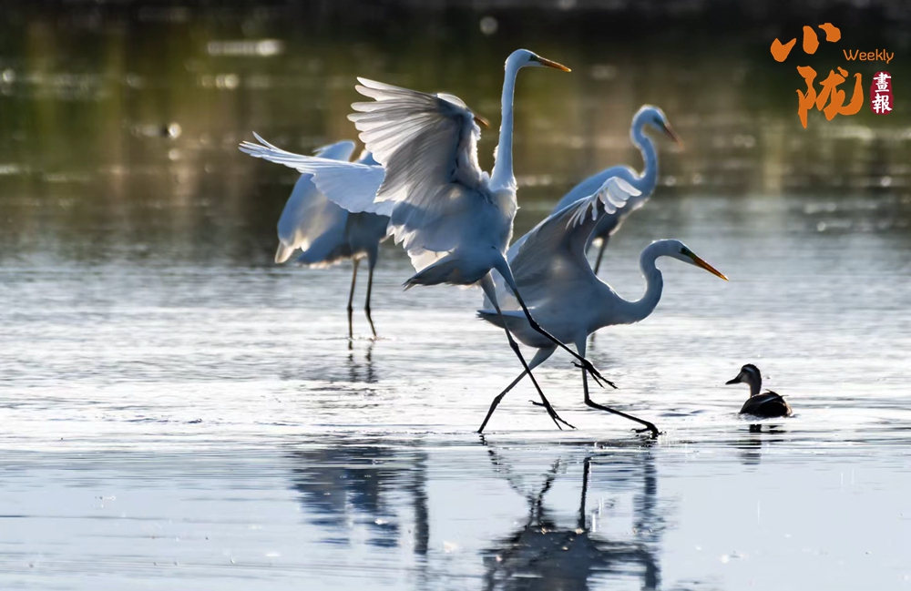 湖中的白鷺翩翩起舞,嬉鬧翻飛,歡快鳴叫,有的停落湖岸,有的游向湖心,有的翻飛空中,為游客帶來(lái)無(wú)盡的歡樂??带B兒們嬉鬧,仿佛回到童年時(shí)代。自由、自在、生機(jī)無(wú)限,讓每個(gè)人感受到無(wú)窮的生命力量。