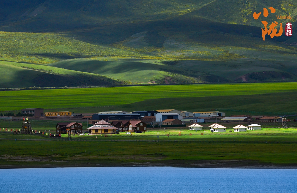 起伏的草地上,嫩綠的青草與明黃的野花混雜在一起,像極了一床素雅的織毯;點綴其間的牧民帳篷和現(xiàn)代民居、清澈的河流,則為這里增添了獨特的韻味和人文氣息。這片土地不僅承載了自然的恩賜,也記錄著人們與大自然和諧共處的故事。