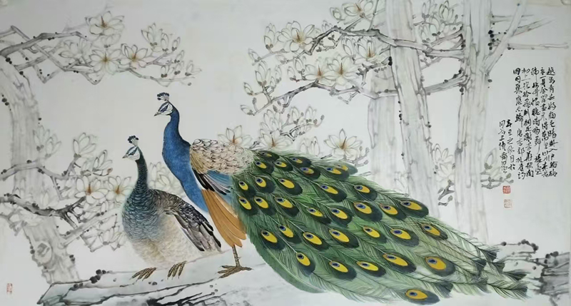 2009年,一幅工筆《粉蝶戲牡丹》的成功售出,成為王自強(qiáng)藝術(shù)生涯的轉(zhuǎn)折點(diǎn)。這幅細(xì)膩靈動(dòng)的作品不僅帶來(lái)經(jīng)濟(jì)收益,更讓他意識(shí)到傳統(tǒng)工筆畫(huà)的市場(chǎng)潛力。此后十年間,他創(chuàng)作的《孔雀牡丹》等工筆畫(huà)作屢獲佳績(jī),八尺整張作品曾拍出2萬(wàn)余元高價(jià)。但真正讓他在書(shū)法界嶄露頭角的,是對(duì)漢隸的深入探索。