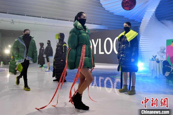 本屆青島時(shí)裝周采用“線(xiàn)上+線(xiàn)下”的方式共組織40場(chǎng)發(fā)布秀。 王海濱 攝